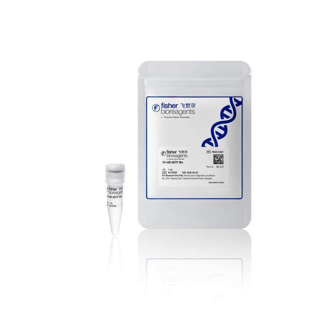 Fisher Bioreagents dNTP 混合物是包含 dATP、dCTP、dGTP 和 dTTP 的水溶液,每种脱氧核苷三磷酸(dNTP)的终浓度均为 10 mM。