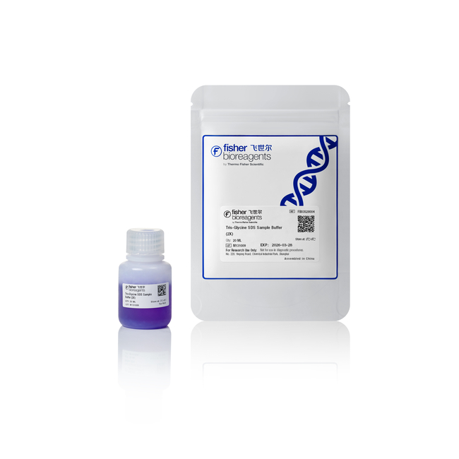 Tris-甘氨酸 SDS 上样缓冲液 (2X) 用于 Tris-甘氨酸凝胶的变性凝胶电泳,以溴酚蓝作为示踪染料,在 pH 6.8 条件下完成蛋白样品制备。